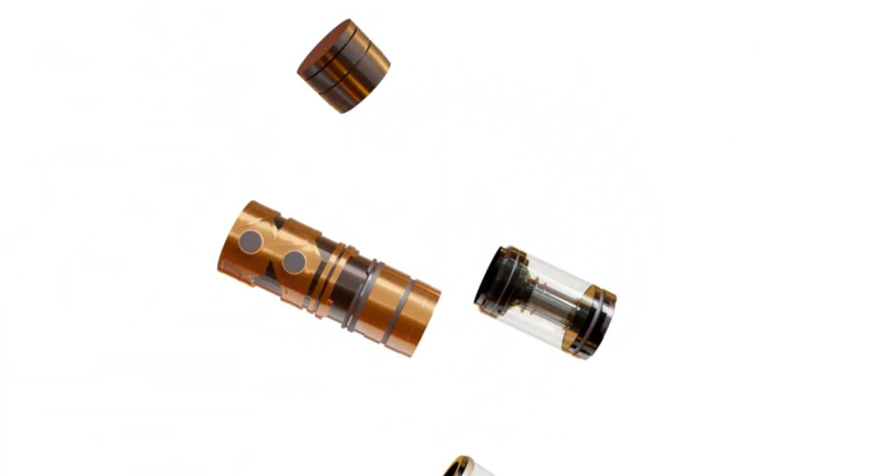 This is the breakdown shot of a Vape product, realistic product visualization.